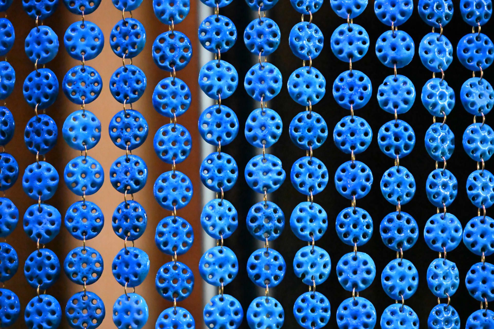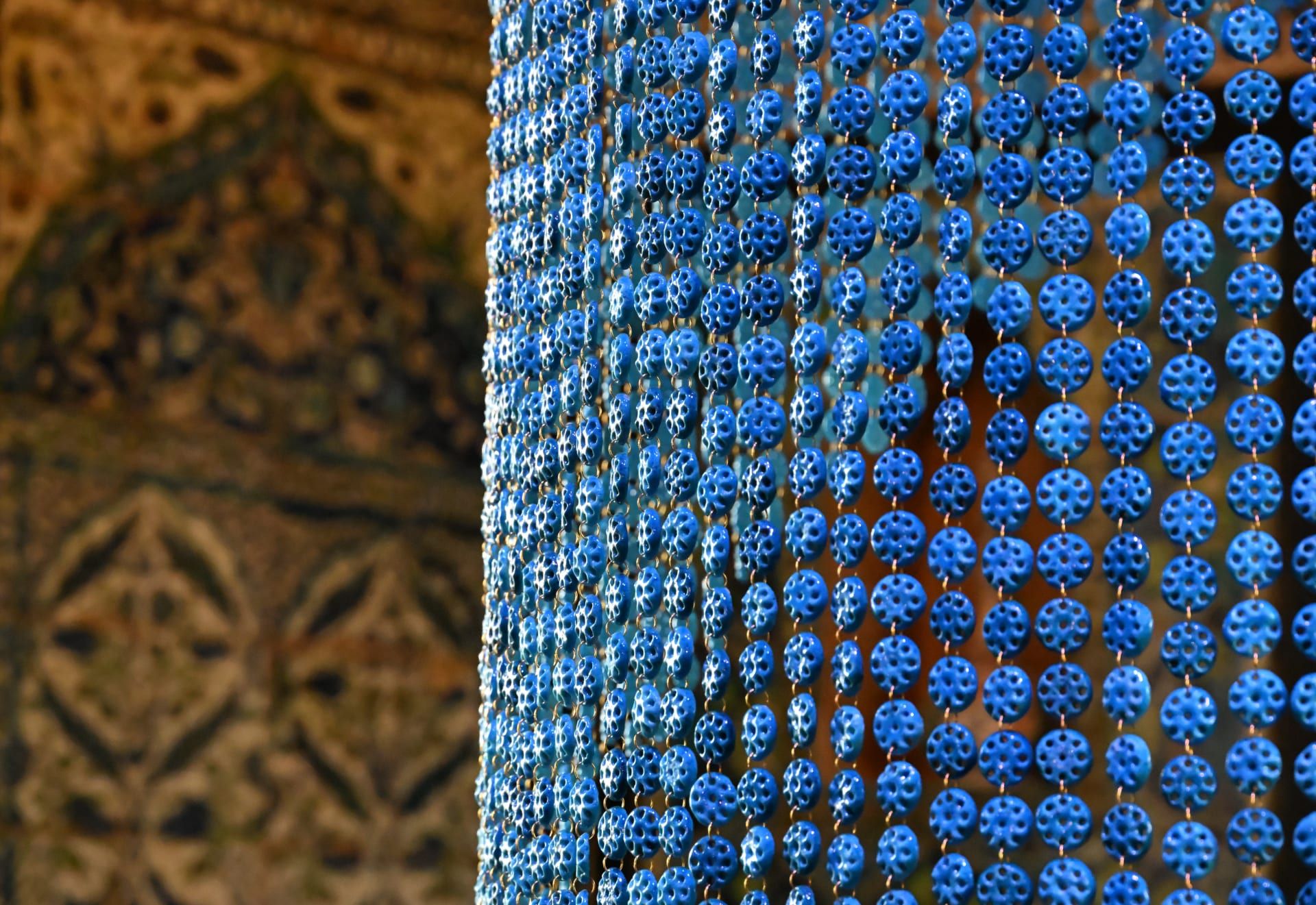 فتحضر مظلّة فنية مكوّنة من 7,500 تميمة على شكل "عين سريانية" معلّقة داخل المكان، في مشهد بصري كثيف يدمج بين الحماية والرمزية.