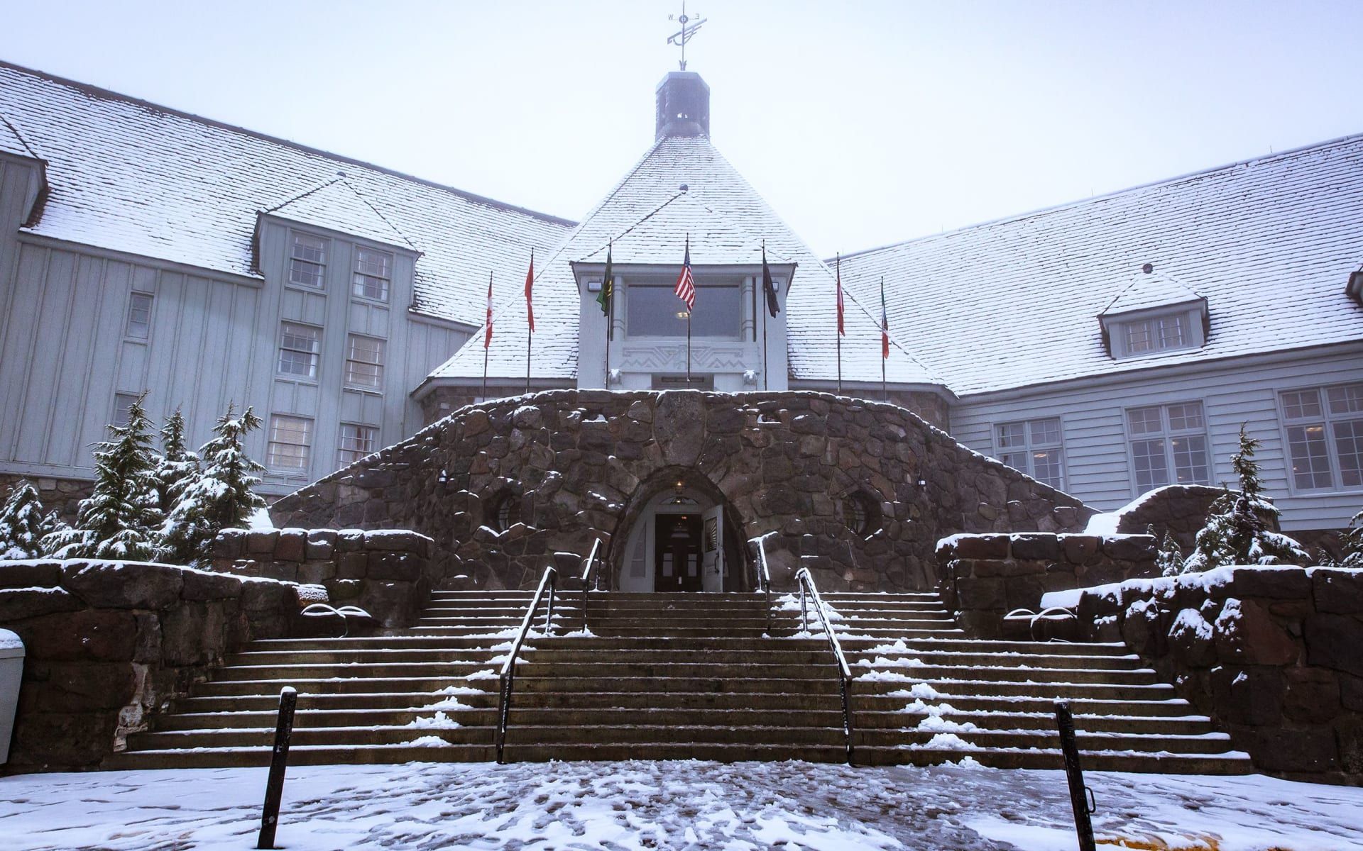 وبدلًا من المتاهة الخيالية التي ابتكرها كوبريك، يطلّ أعلى جبال أوريغون على الفندق مباشرة.
