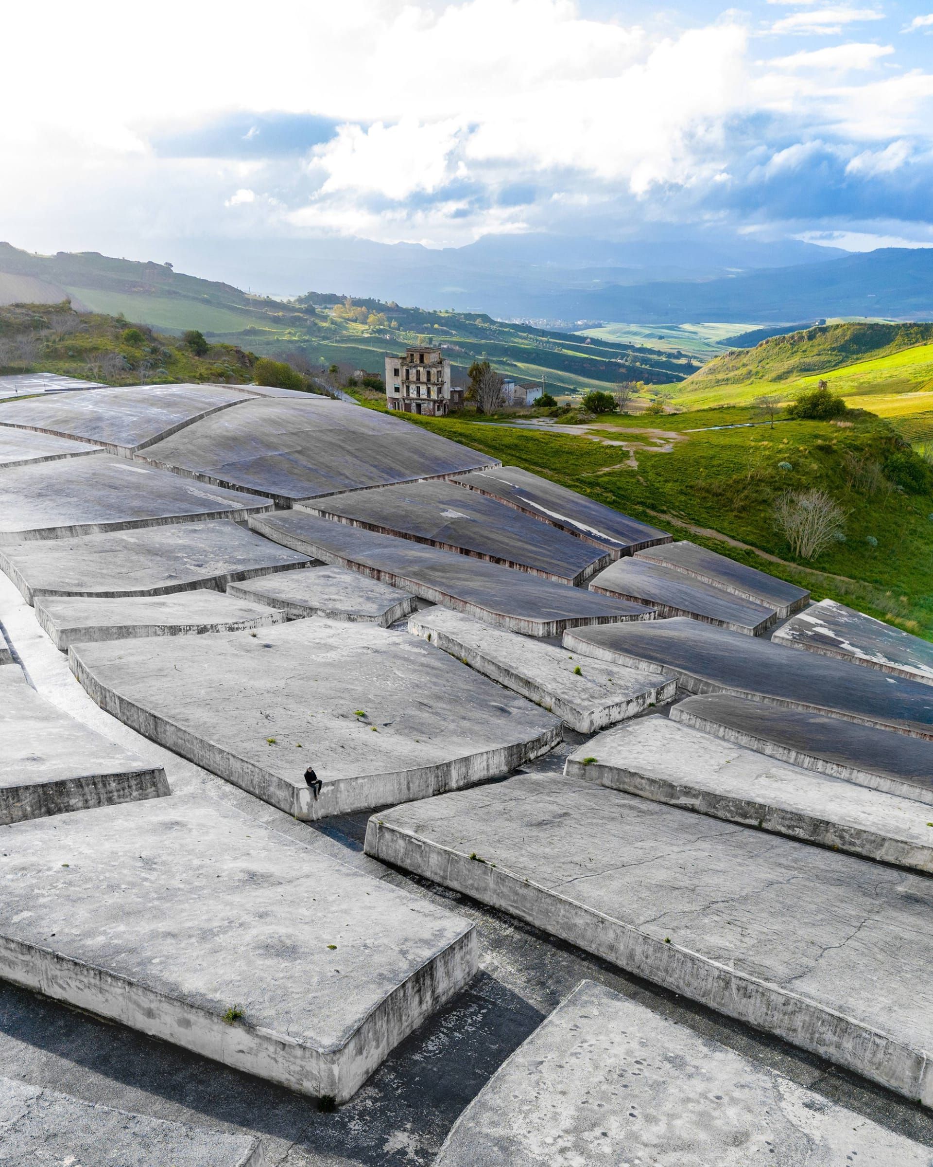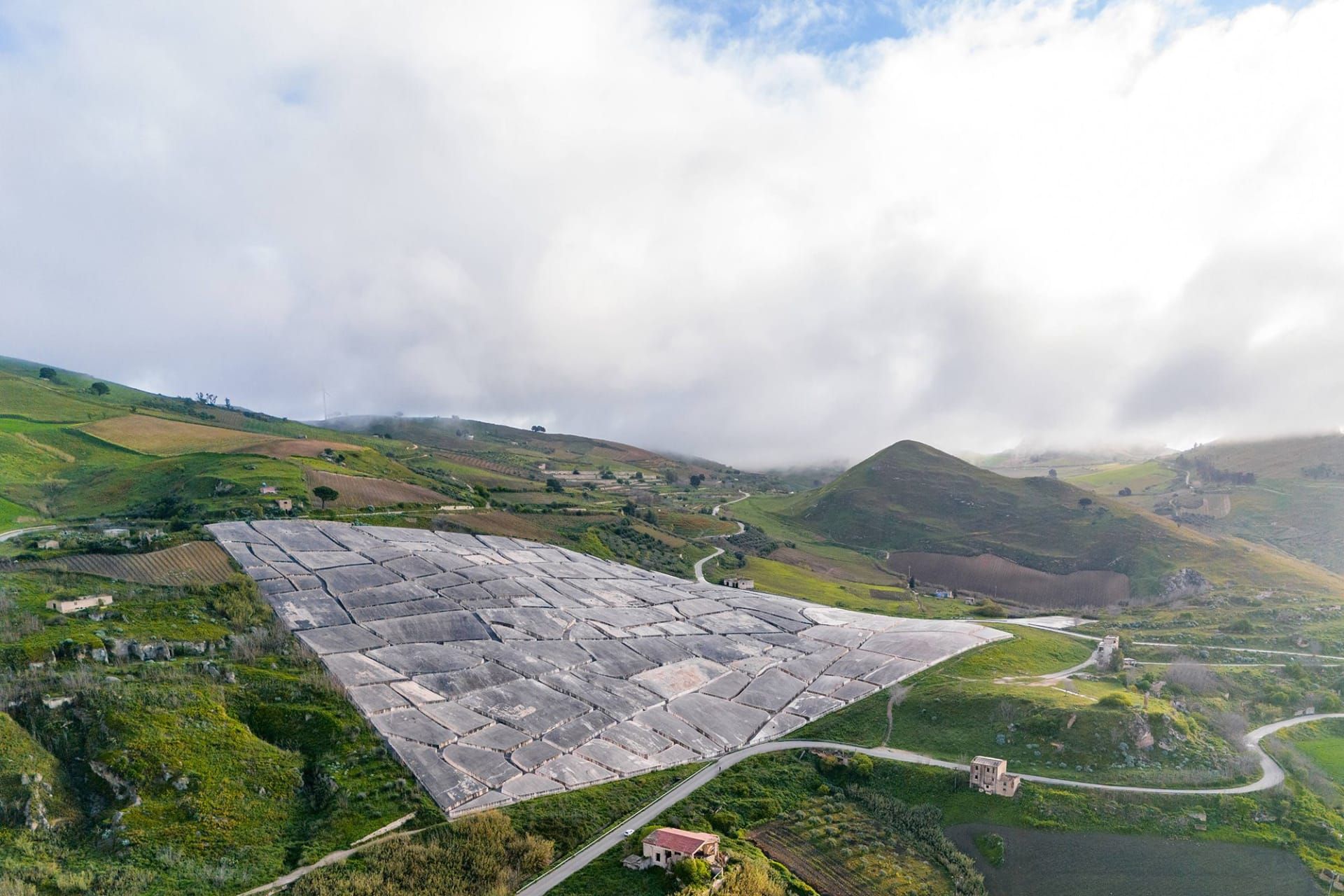 لكنه ليس مجرد عمل فني فنيًا، حيث يمتد فوق أنقاض بلدة جيبيلينا، التي دمرها زلزال في 15 يناير/كانون الثاني من عام 1968.