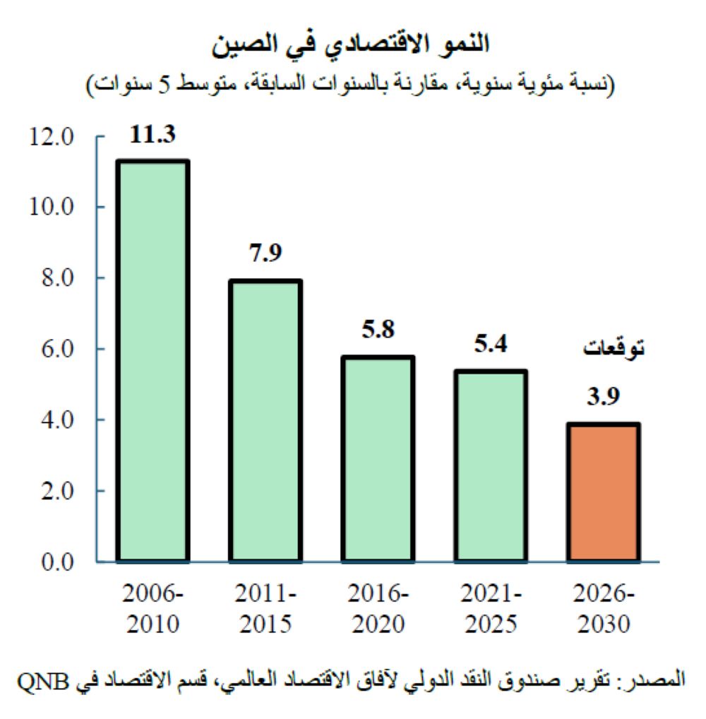 السبت 25 أبريل 2026 07:04 مساءً اعتبر بنك قطر الوطني QNB أن خطة التنمية الخمسية الصينية للفترة (2026-2030) تمثل نقطة تحول استراتيجية، إذ تستهدف نسختها الخامسة عشرة مضاعفة نصيب الفرد من الناتج المحلي الإجمالي بحلول عام 2035.