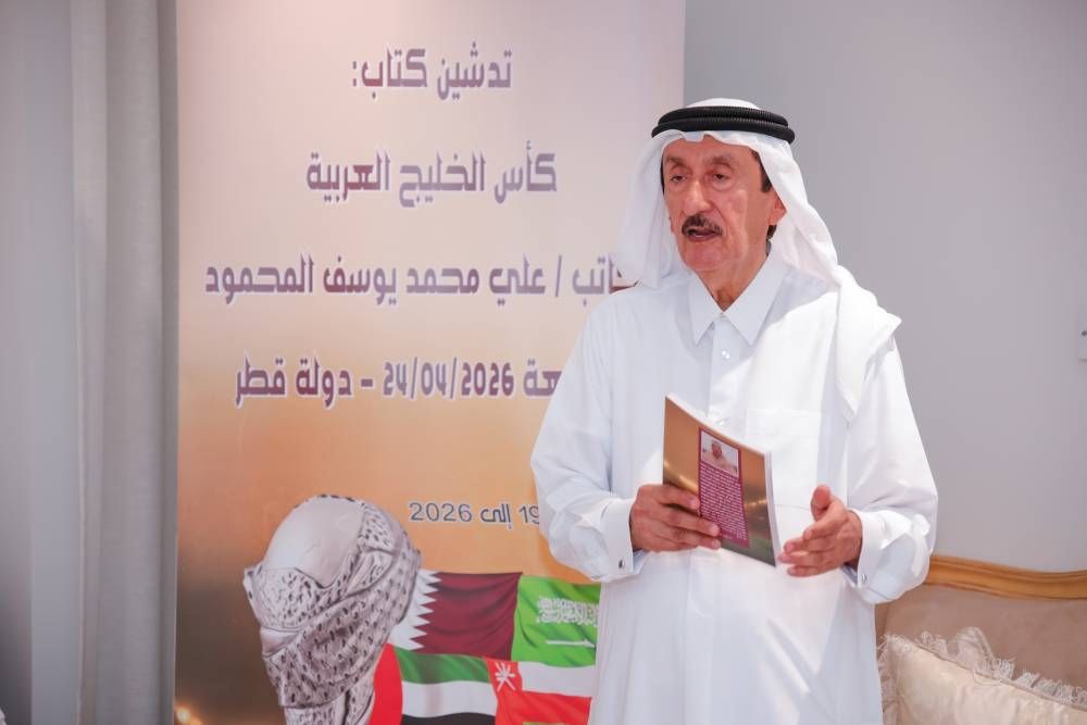 السبت 25 أبريل 2026 07:16 مساءً شهد مجلس الكاتب علي محمد يوسف المحمود بمدينة الوكرة أمسية استثنائية بتدشين كتابه الجديد «كأس الخليج العربية بين 1976 - 2026»، وسط حضور كبير من الشخصيات الرياضية القطرية والخليجية الذين حرصوا على مشاركة هذه اللحظة التاريخية.
