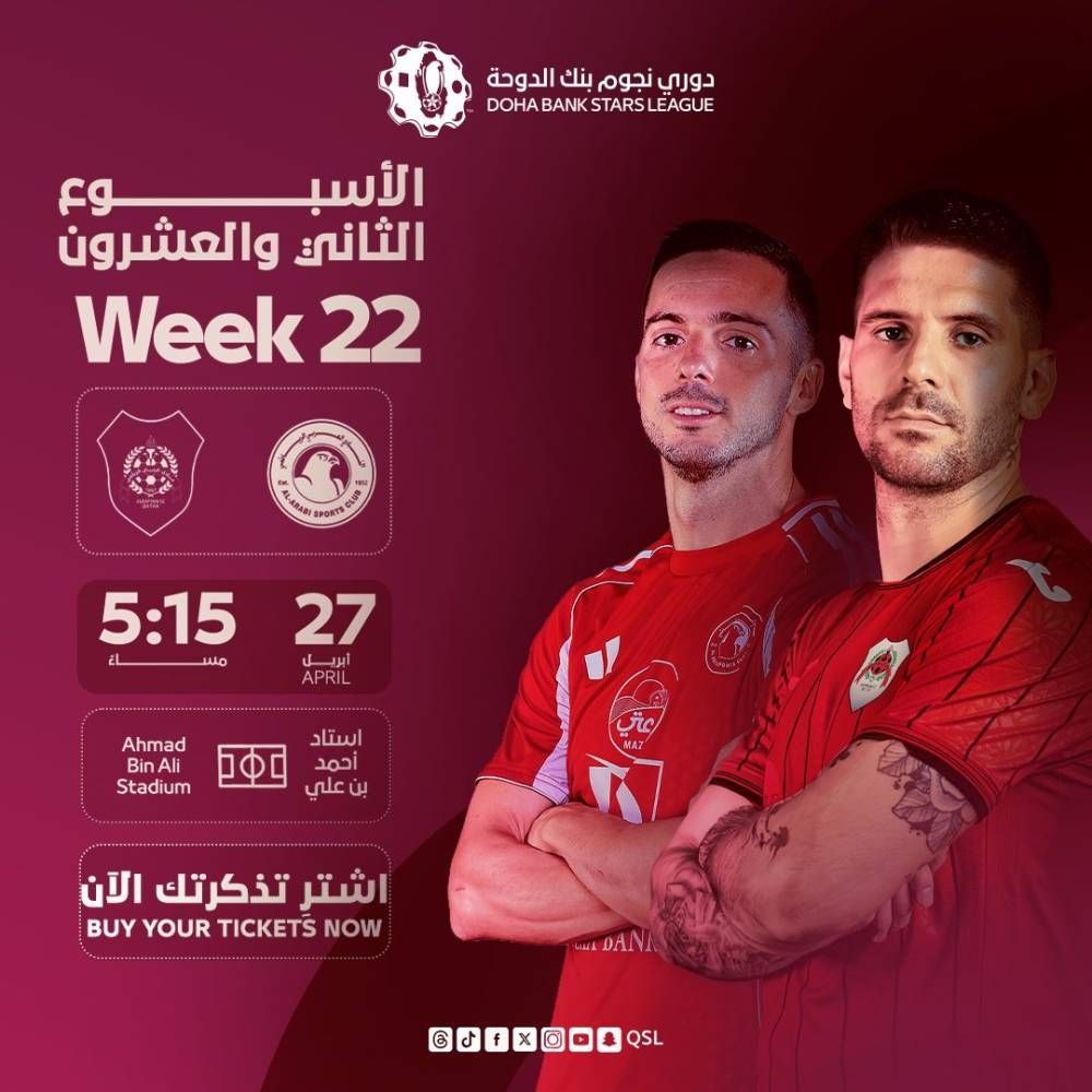في المقابل، يدخل العربي المباراة وهو يحتل المركز السادس برصيد 32 نقطة، بفارق الأهداف عن نادي قطر، ويطمح لتحقيق الفوز مع انتظار تعثر الغرافة وقطر، من أجل اقتحام المربع الذهبي في الأمتار الأخيرة من السباق.