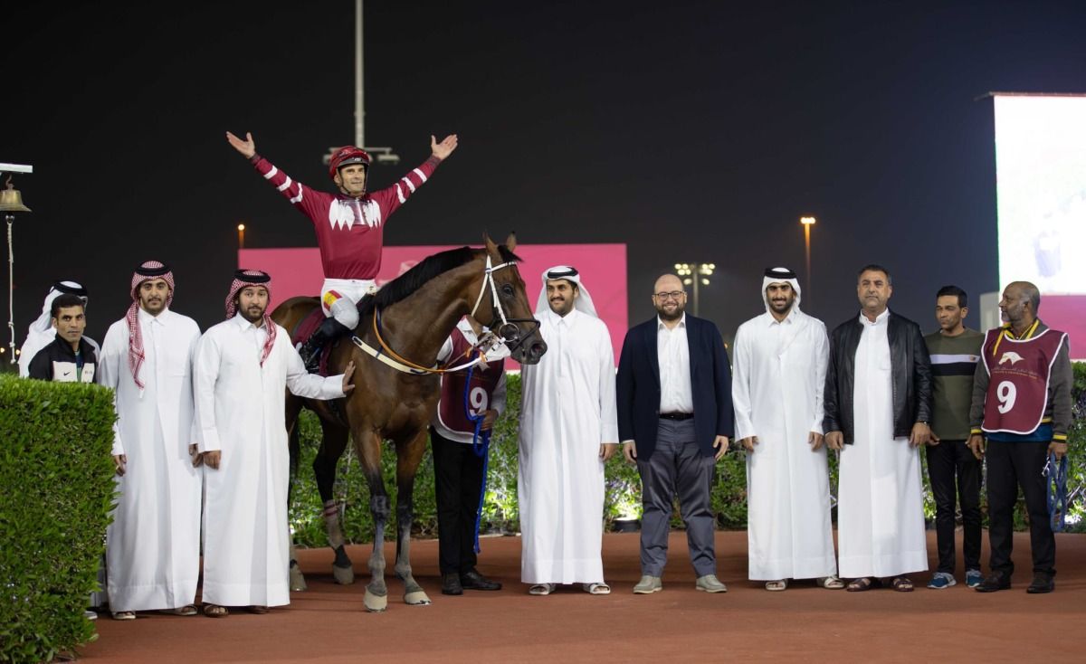 وتوج الفائزين السيد راشد سعيد عضيبه، رئيس قسم تنظيم السباقات بنادي قطر للسباق والفروسية.