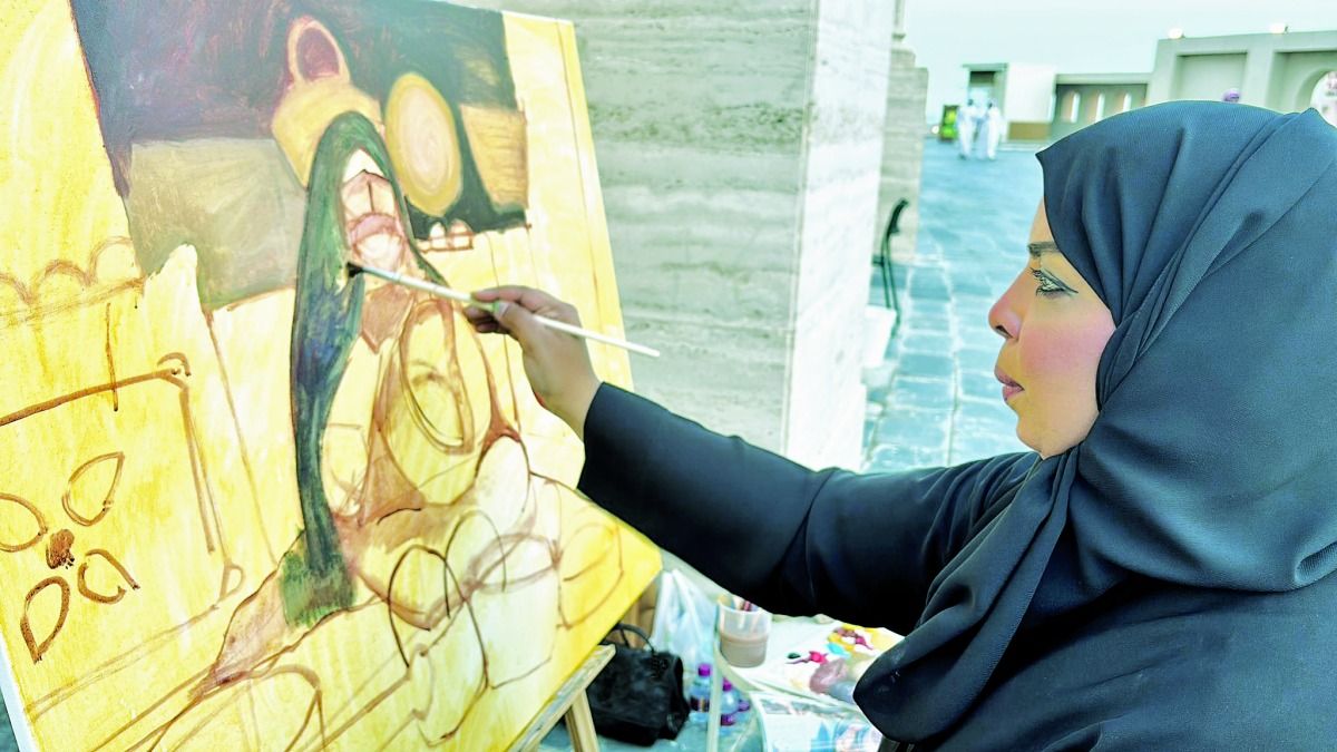 وبدورها، قدمّت الفنانة القطرية لولوة المغيصيب لوحة عن صناعة سلال القش التراثية، موضحة أهمية الحرف اليدوية التقليدية في الحفاظ على الموروث الثقافي.