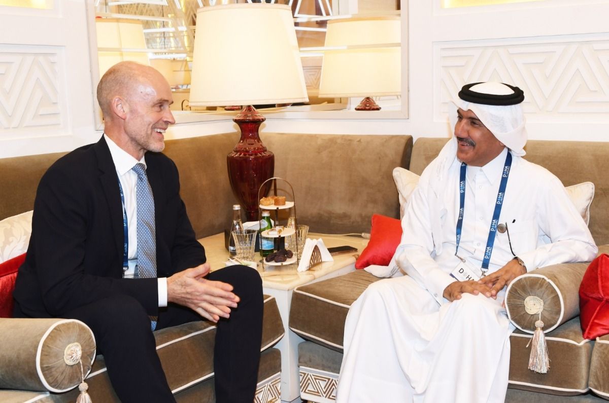 اجتمع سعادة الدكتور أحمد بن حسن الحمادي، الأمين العام لوزارة الخارجية، اليوم، مع سعادة السيد ميكائيل ليندفال، المدير العام للشؤون العالمية بوزارة الخارجية بمملكة السويد، على هامش النسخة الثالثة والعشرين لمنتدى الدوحة 2025.