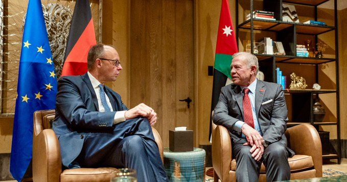 بحث العاهل الأردني الملك عبدالله الثاني، اليوم، مع المستشار الألماني فريدريش ميرتس، الذي يزور الأردن، سبل تعزيز التعاون وتوطيد الشراكة الاستراتيجية بين البلدين.