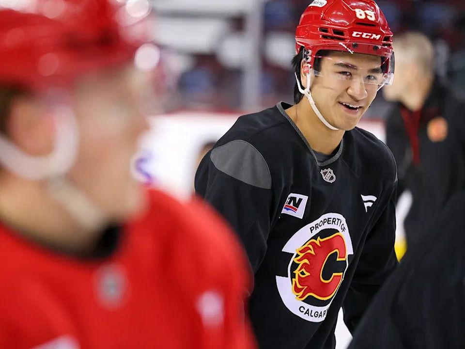 Calgary Flames defenceman Zayne Parekh was photographed during a morning skate at the Scotiabank Saddledome in Calgary on Tuesday, April 15, 2025.