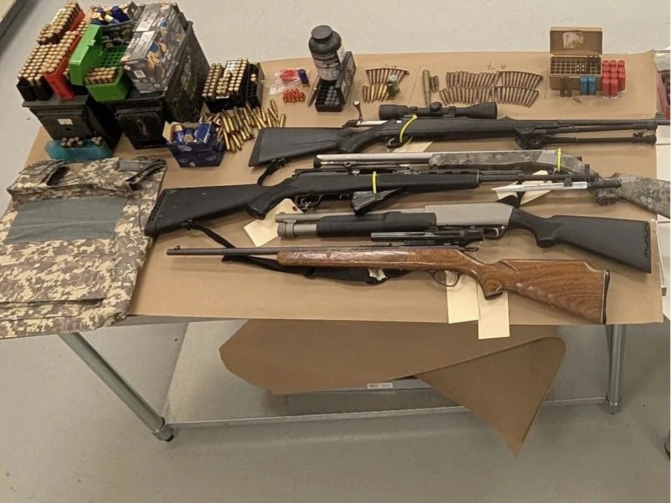During the search, officers located and seized multiple firearms and ammunition that police said proved to be evidence relevant to the investigation.