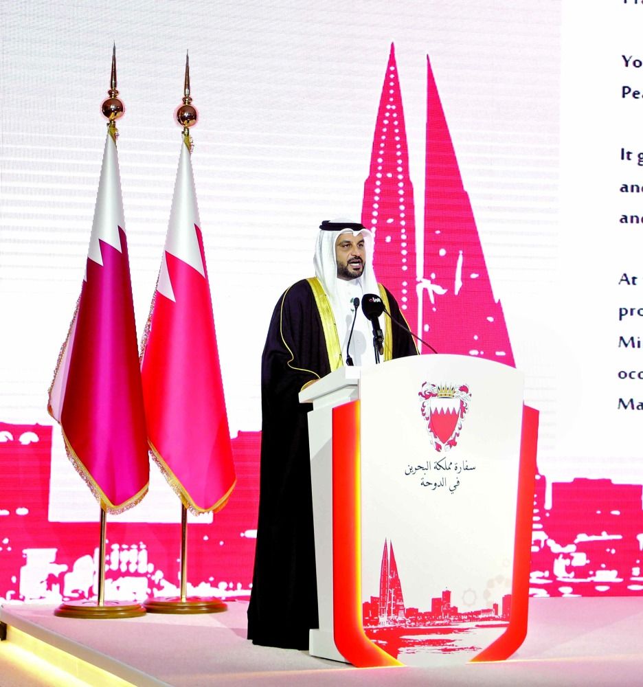 وجاء ذلك في كلمة سعادته في احتفال أقامته السفارة بمناسبة العيد الوطني لمملكة البحرين حضره عدد من أصحاب السعادة الشيوخ والوزراء والسفراء المعتمدين لدى دولة قطر.