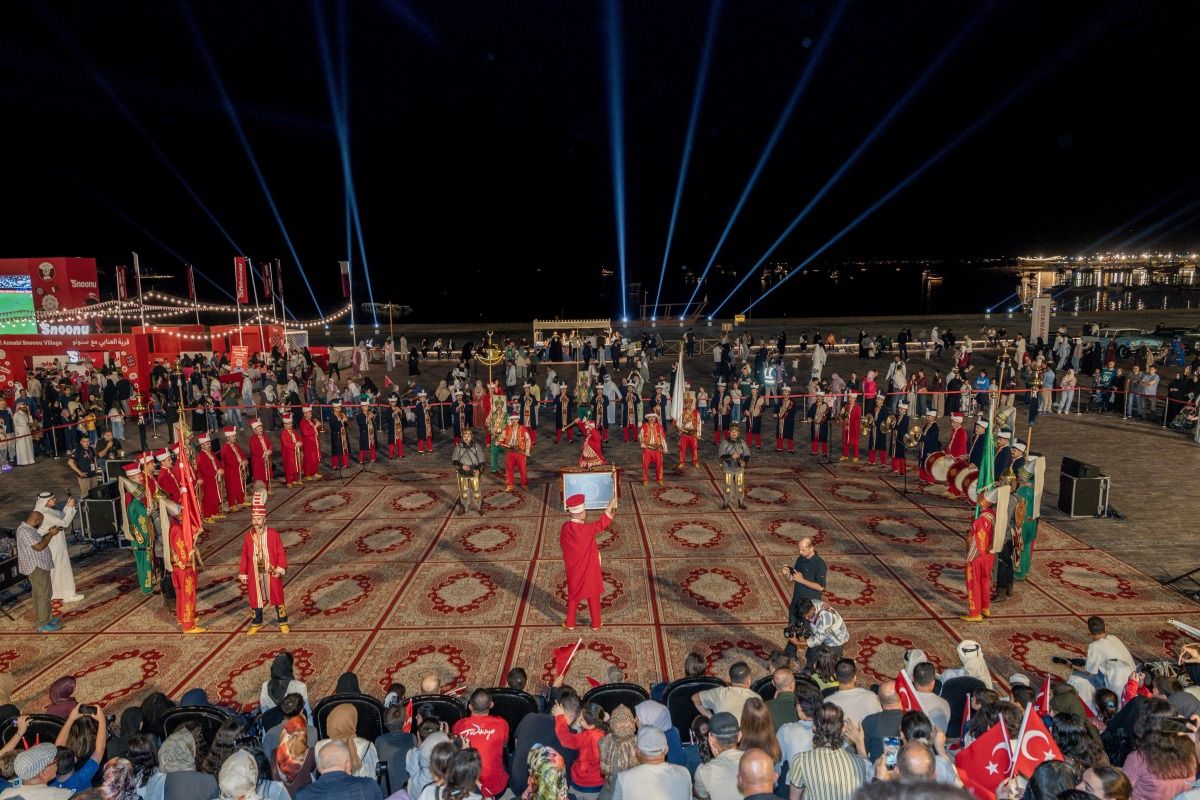 وفي هذا الإطار، شهدت ساحة المسرح المكشوف بكتارا حضورا جماهيريا كثيفا توافد لمتابعة العرض العسكري الذي قدمته الفرقة التركية، والذي حظي بتفاعل واسع من الجمهور، وقدمت الفرقة عرضا مميزًا اتسم بالدقة والتناغم العالي، مزج بين الإيقاعات العسكرية الصارمة والمعزوفات التراثية، في لوحة استعراضية مميزة عبرت عن الهوية الوطنية لتركيا.
