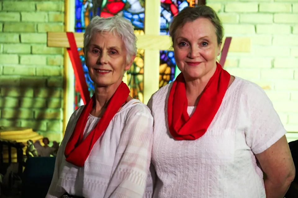 Heather Quinn, left, and Maurita Kiesman both sing in the choir, and say it has allowed them to spread joy to all, including themselves. (Prabhjot Singh Lotey/CBC)