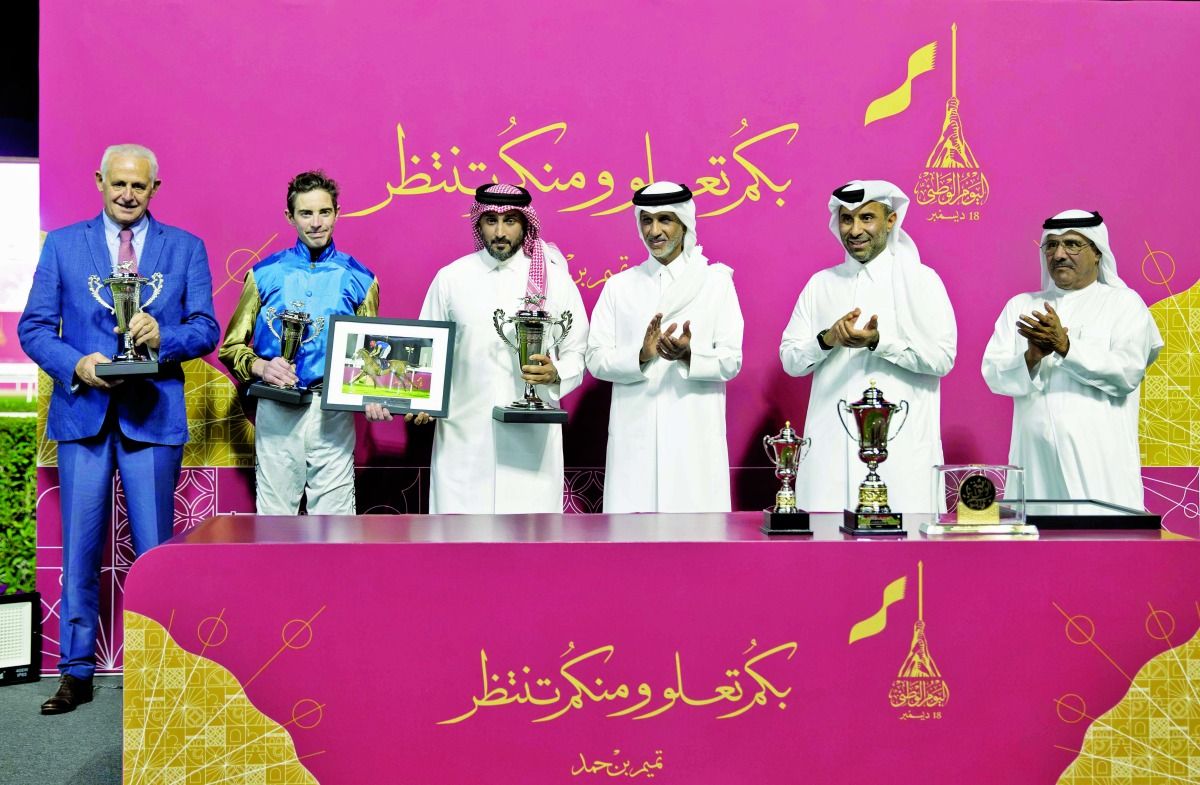 عقب نهاية الشوط الثامن توج سعادة الشيخ حمد بن خليفة بن أحمد آل ثاني، وزير الرياضة والشباب، الفائزين بجائزة اليوم الوطني، وتسلم الجائزة السيد علي بن يوسف الكبيسي نيابة عن وذنان ريسنغ مالك الفرس الفائزة " آر بي ماري ليلة" التي أضافت لهم ولمدربها ألبان دو ميول الفوز الثالث على التوالي في السباق،بقيادة الخيال جيمس دويل، كما احتفظ الثلاثي المالك والمدرب والخيال بنفس الجائزة للعام الثاني على التوالي بعد فوزهم بها العام الماضي مع الجواد "جبلة".