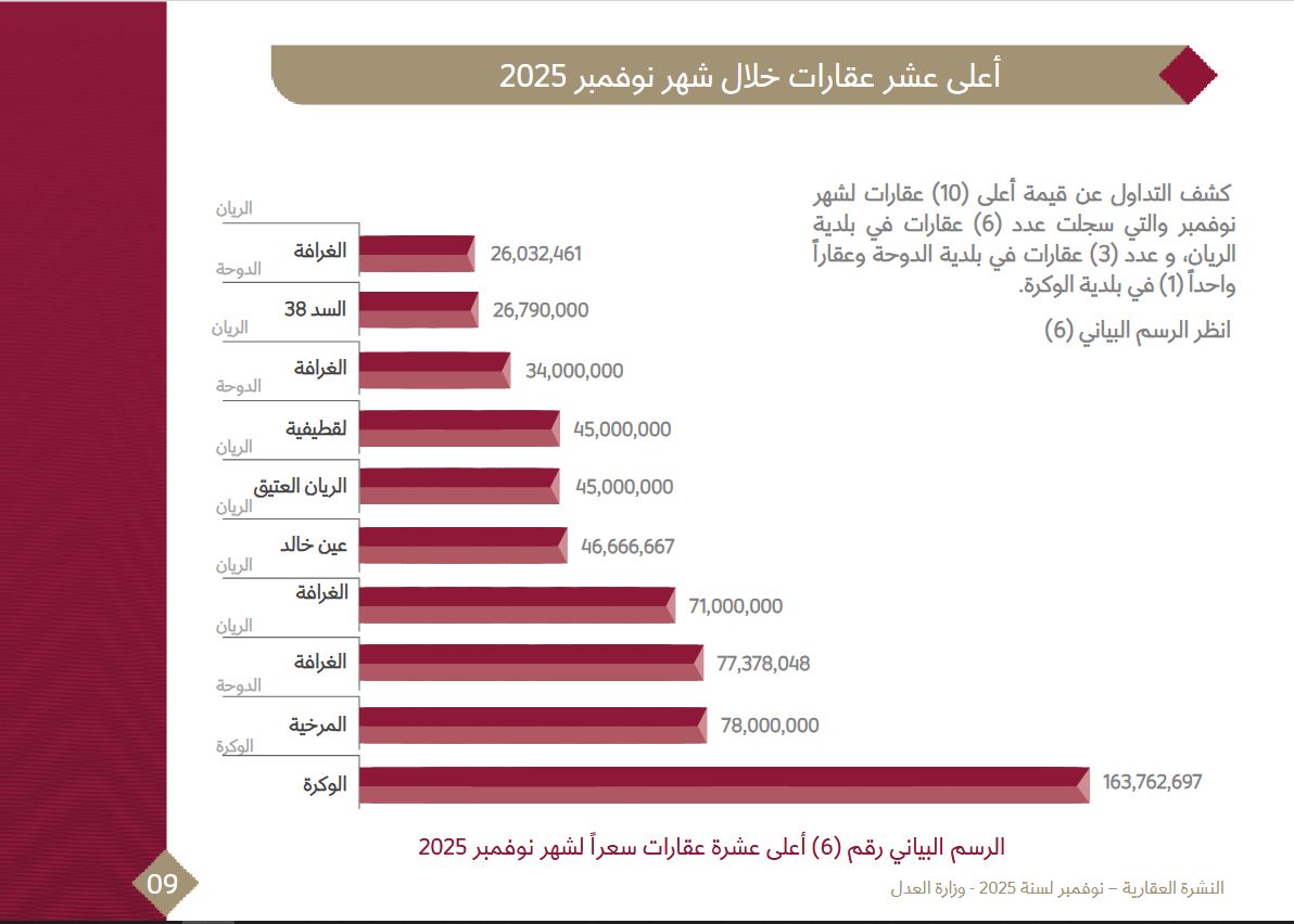 أغلى 10 عقارات في قطر لشهر نوفمبر 2025: