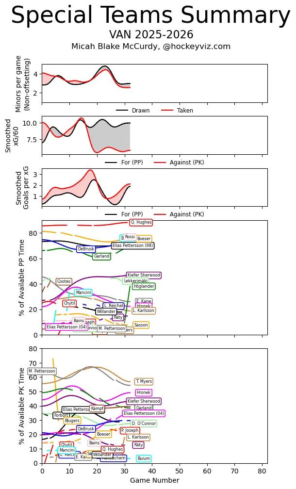 The penalty kill is no longer a total disaster. Beginning about 15 games ago, the Canucks really buckled down on limiting quality shots against on the penalty kill.