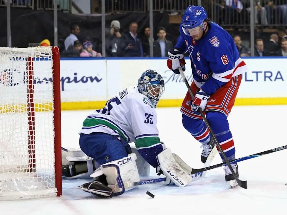 Tuesday night at Madison Square Garden, the Canucks skated away 3-0 winners over the Blueshirts. They didn’t generate much on offence but still took the few chances they had and in their own end got a solid effort from goalie Thatcher Demko, who posted the Canucks’ first shutout since last February — a shutout by Demko over the Colorado Avalanche.
