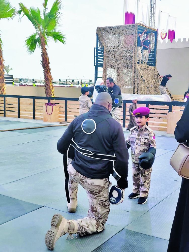 كما قدم جناح وزارة الدفاع عدداً من التدريبات العسكرية الموجهة للأطفال، حيث جرى تصميم هذا القسم بأسلوب شيق وجذاب يمزج بين التعليم والترفيه، مستهدفًا غرس الروح الوطنية، الانضباط، والشجاعة في نفوس النشء، شملت هذه المراحل صعود شبكات التسلق، وهو تدريب يهدف إلى تنمية اللياقة البدنية، وتعزيز العمل الجماعي، وتحفيز الأطفال على التغلب على التحديات تحت إشراف مباشر لضمان سلامتهم.