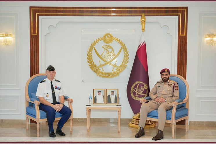 التقى الفريق الركن هزاع بن خليل الشهواني، قائد الحرس الأميري، اليوم في معسكر "برزان"، العميد الركن فرانسوا كزافيه ليسيور، قائد الحرس الجمهوري الفرنسي والوفد المرافق له.
