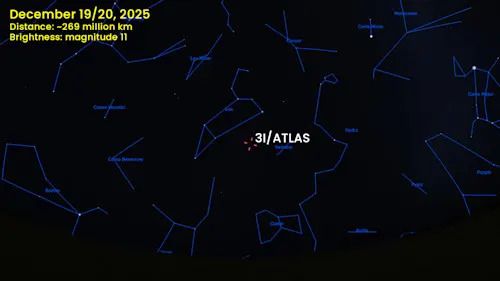 On Friday, December 19, 2025, comet 3I/ATLAS will make its closest approach to Earth.