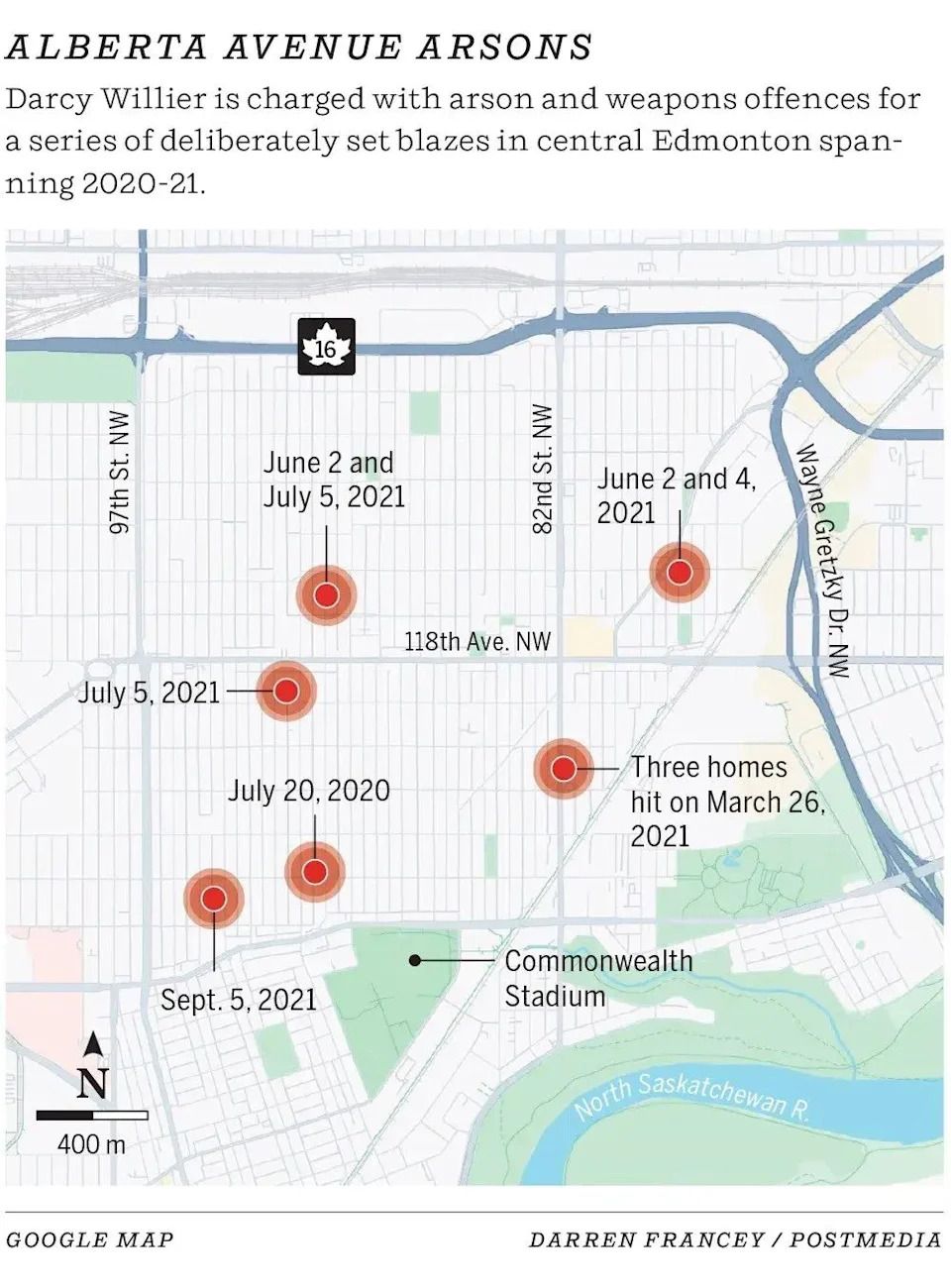 Darcy Willier learned his fate Friday afternoon, months after Court of King’s Bench Justice Nathan Whitling found him guilty of setting fire to six properties in the city’s Alberta Avenue district in 2020 and 2021. Willier set the fires on behalf of notorious landlord and accused drug dealer Abdullah Shah, also known as Carmen Pervez, who was shot to death in an unsolved homicide in March 2022, court heard.
