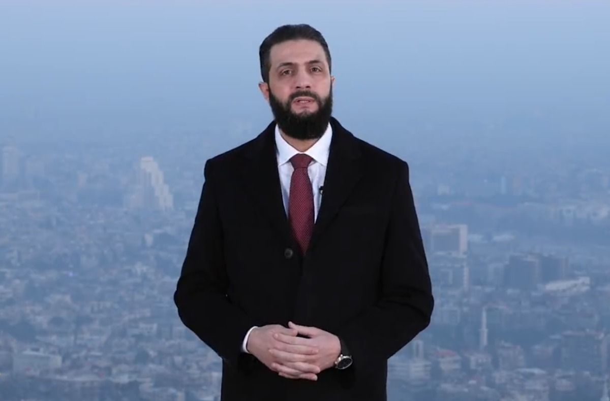 وقال الشرع - في كلمة مصورة من سفح جبل قاسيون المُطل على العاصمة السورية دمشق بُثت الجمعة - "أتوجه إليكم من على سفح جبل قاسيون بالتهنئة والشكر لرفع العقوبات عن سوريا، فاليوم هو أول يوم وسوريا بدون عقوبات".