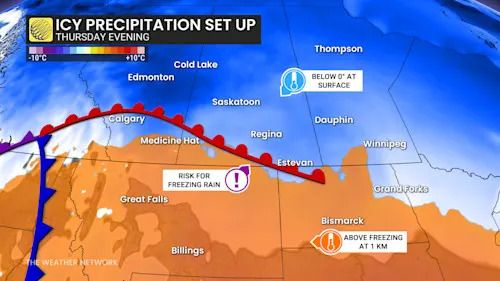 A second system will bring icy conditions to the southern Prairies on Thursday.