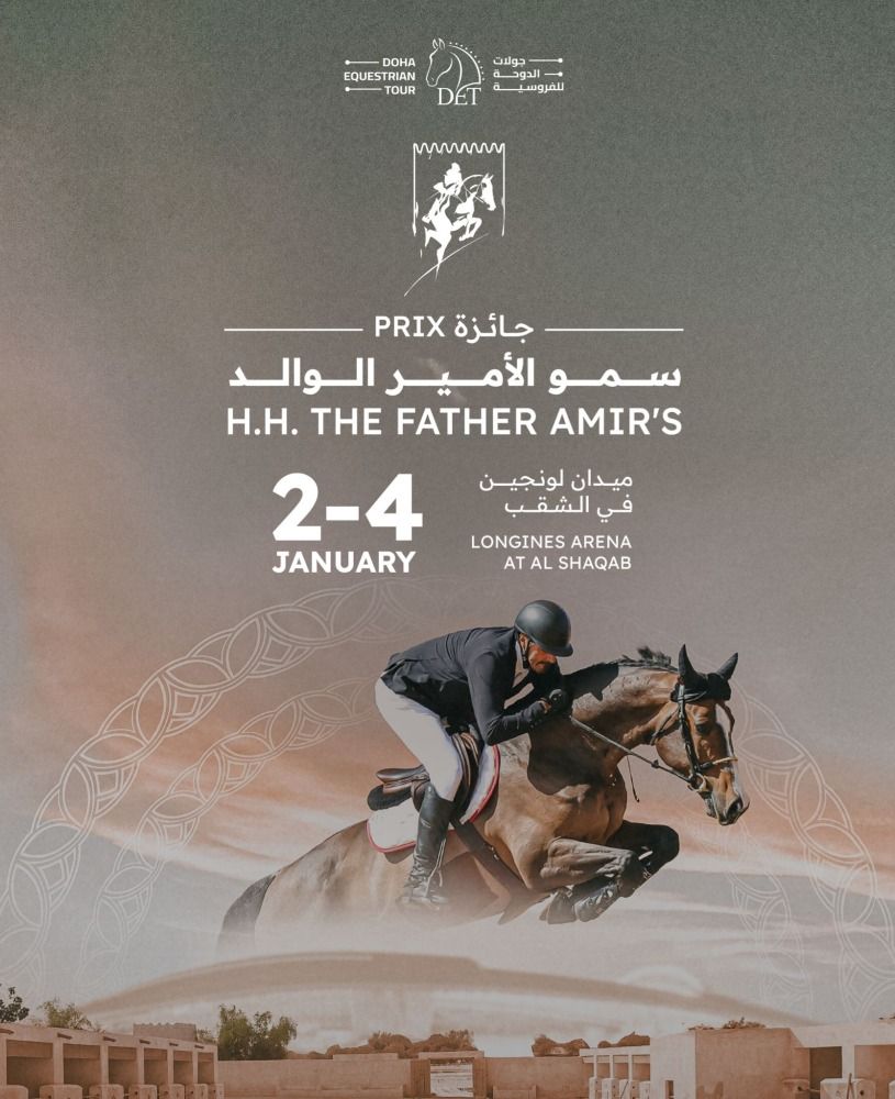 أعلنت اللجنة المنظمة لجولات الدوحة للفروسية عن طرح تذاكر جائزة سمو الأمير الوالد للفروسية، والتي ستنطلق أولى جولاتها في ميدان لونجين بالشقب يوم الأحد الموافق 2 يناير ولمدة 3 أيام، بمشاركة أكثر من 240 فارساً وبمجموع جوائز تتجاوز قيمتها 3.3 مليون يورو للبطولة.