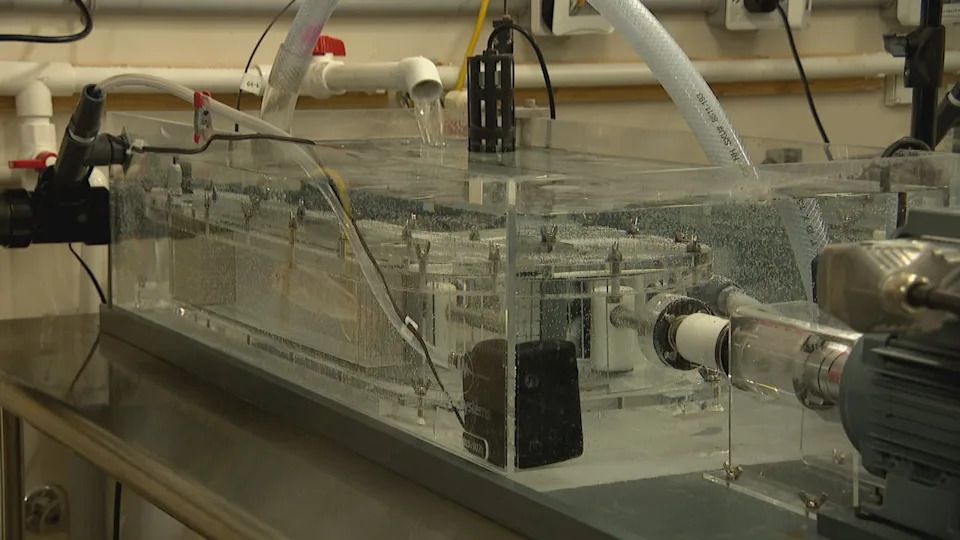 MacCormack and his team are currently using swim tunnel respirometers to understand the impact that a change in diet can have on fish heart health. (Pierre Fournier/CBC )