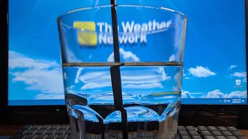 A straw appears bent or broken in a glass of water for the same reason—water is much denser than air, so the light bends dramatically as it passes through the water on its way to your eye.
