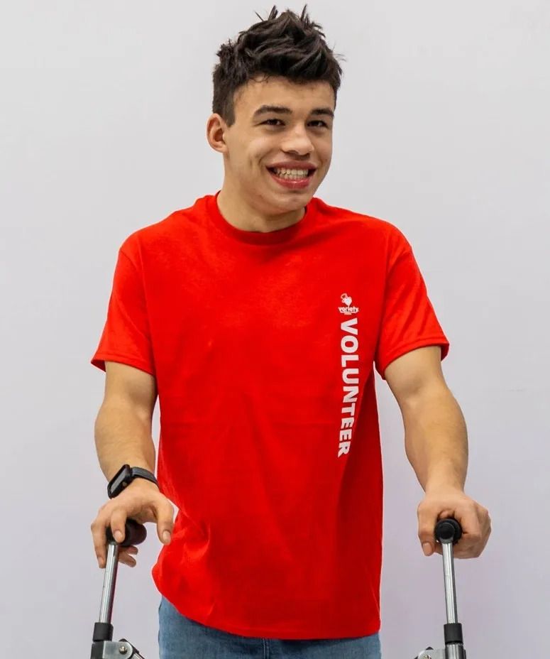 He has cerebral palsy. He did not crawl or say a word until he was three. At 12, he endured bone-crushing surgery to stabilize his legs. He gets around mostly by wheelchair or walker and his speech can be as halting as his gait. He’s been in physio since he was two.