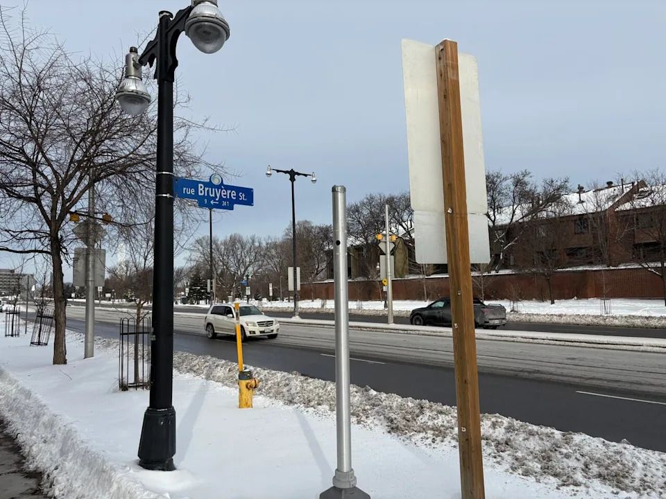 This pole at the corner of King Edward Avenue and Bruyere Street once held the speed camera that topped all city cameras for speeding violations in 2024 and 2025. (Liam Baker/CBC)