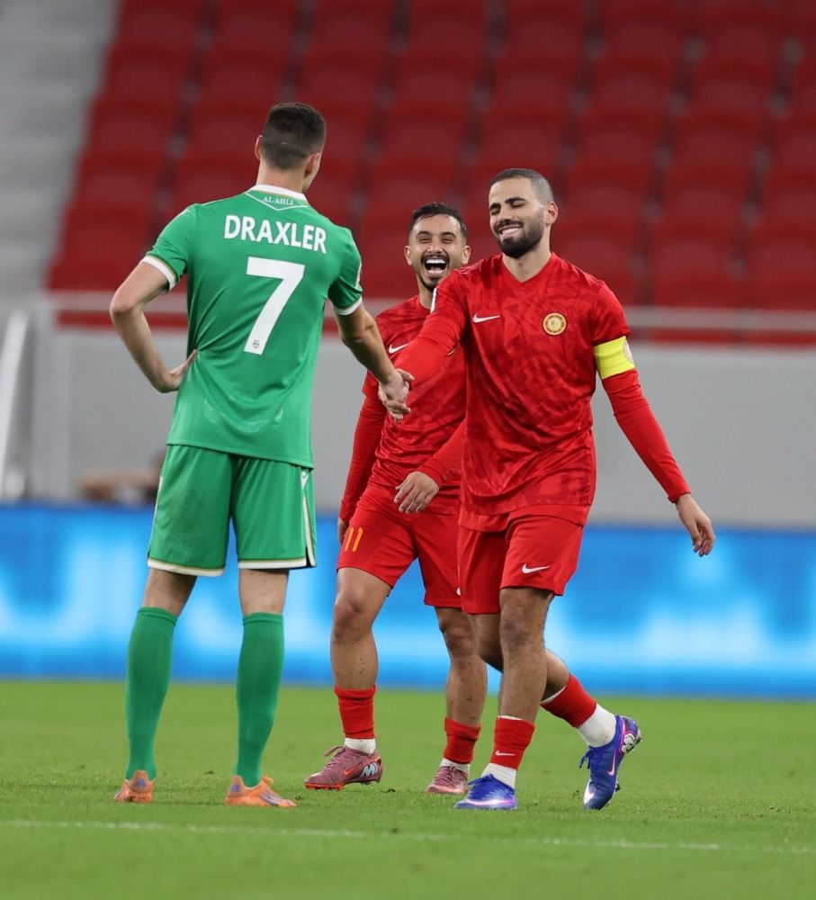 واقترب الأهلي من التسجيل من ركلة ركنية نفذها دراكسلر بشكل رائع داخل المنطقة، ليحولها الإيفواري جان يوديس مدافع أم صلال بالخطأ تجاه مرماه لترتد الكرة من القائم في الدقيقة (4+45)، قبل أن يطلق الحكم صافرة نهاية الشوط الأول بالتعادل السلبي.