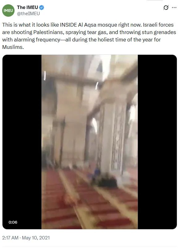 Klein was referring to was a video shared which claimed that, “This is what it looks like INSIDE Al Aqsa mosque right now. Israeli forces are shooting Palestinians, spraying tear gas, and throwing stun grenades with alarming frequency — all during the holiest time of the year for Muslims.”