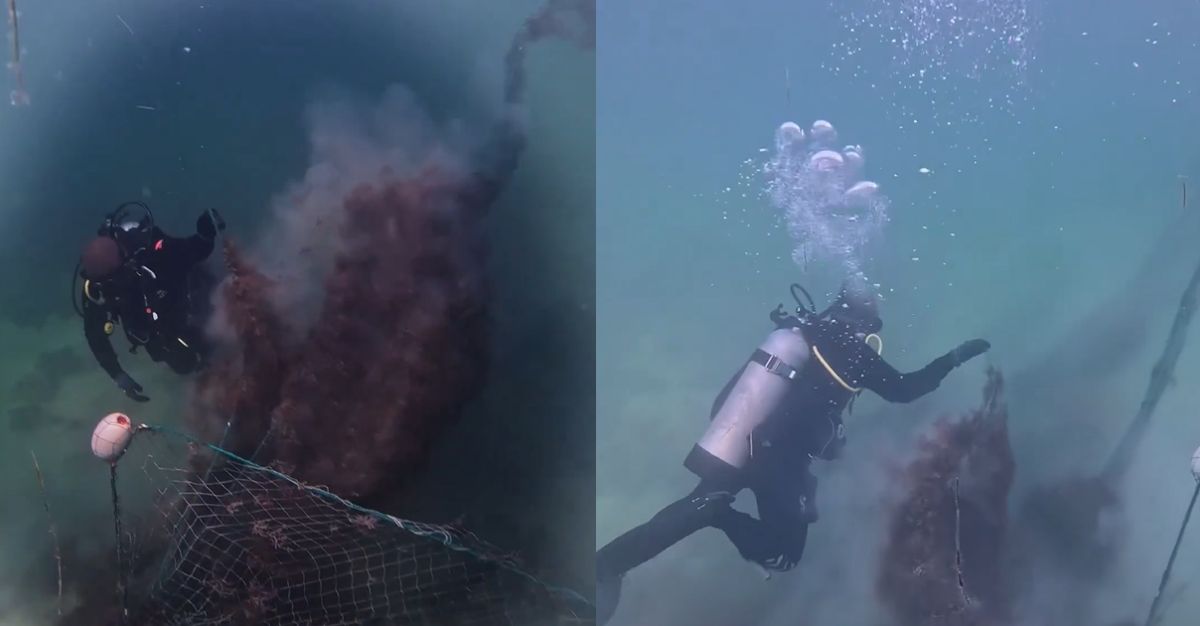 وأوضحت وزارة البيئة عبر منصة "إكس"، اليوم الأربعاء، أن فريق الغواصين تمكن من إزالة شباك صيد مهملة كانت عالقة على عمق يُقدَّر بنحو (5) أمتار، وبطول يقارب (600) متر، إضافة إلى تحرير وإنقاذ عدد من الكائنات البحرية.