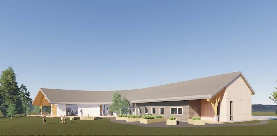 An exterior rendering of the Little Salmon Carmacks First Nation youth centre. Construction is expected to be completed in the spring of 2026. (Submitted by Oriel Flam-Shepherd/Wildstone Construction)
