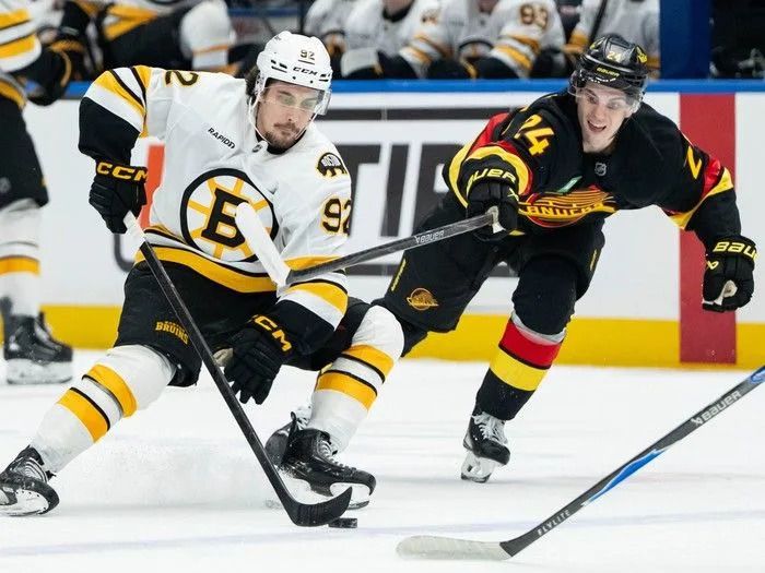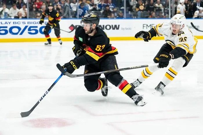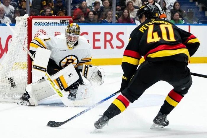 Pettersson got one of the goals off a foot — in his case, it was actually off his foot, as opposed to Filip Hronek’s goal, which went in off Charlie McAvoy’s foot. He almost won the game in the third, slashing across the Boston zone, but couldn’t get the puck straight as Jeremy Swayman sprawled to make the save. The puck hit the side of the net instead.