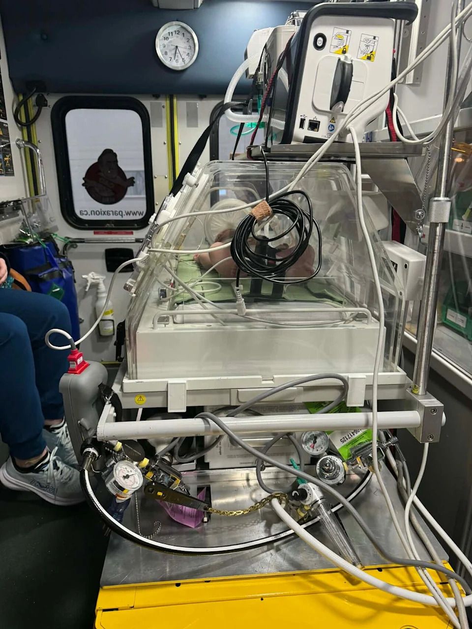 Camille Arsenault's daughter was transported by ambulance back to Maria after her birth in the Chandler hospital. (Submitted by Camille Arsenault )