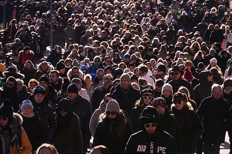 People mourn during a memorial procession after a devastating fire in Le Constellation killed 40 people, in Crans-Montana, Swiss Alps, Switzerland, Sunday, Jan. 4, 2026 - Antonio Calanni/Copyright 2026 The AP. All rights reserved.