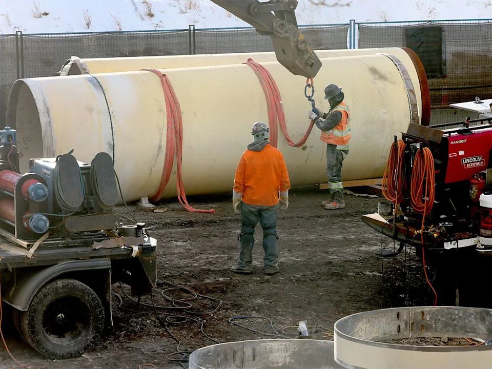 City crews continue to work on a new section of water main pipe in Calgary on Tuesday, Jan. 6, 2026.