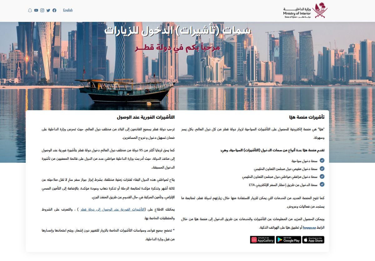 ويمكن الحصول المزيد من المعلومات عن التأشيرات والخدمات عن طريق الدخول إلى منصة هيّا من خلال الرابط hayya.qa أو تطبيق هيّا على الهواتف الذكية.