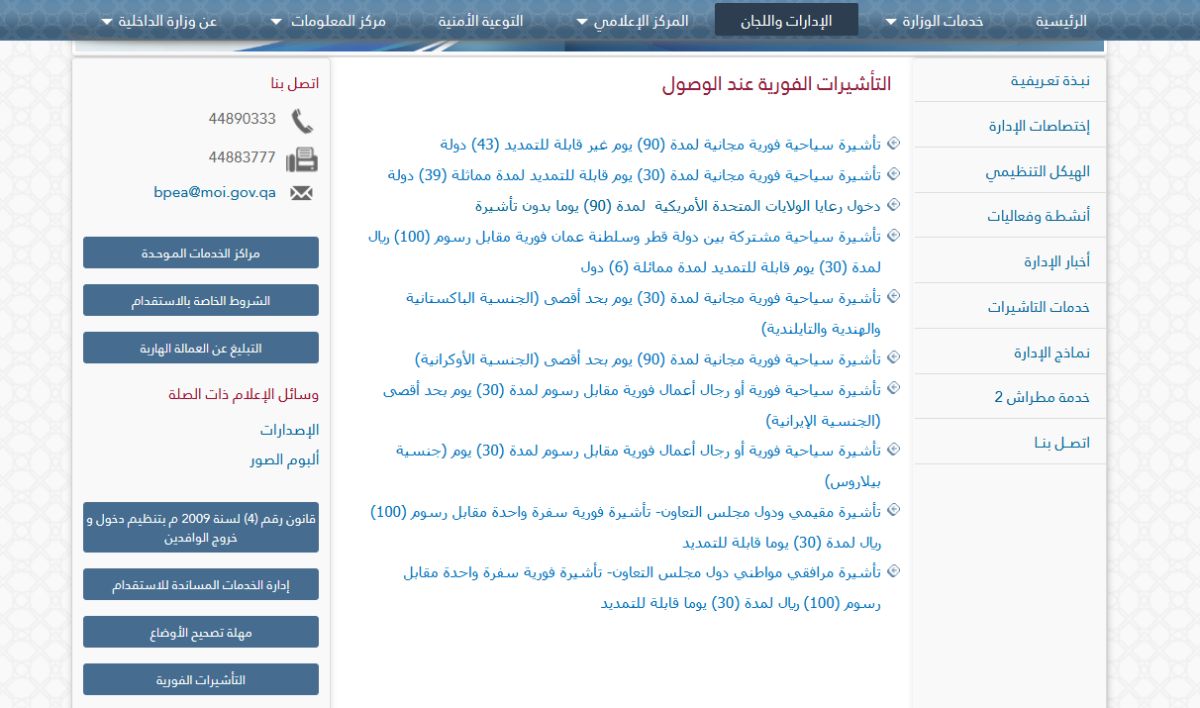 يحق لرعايا أكثر من 95 دولة من مختلف دول العالم دخول دولة قطر بتأشيرة فورية عند الوصول إلى منافذ الدولة، حيث أدرجت وزارة الداخلية مواطني عدد من الدول على قائمة المعفيين من تأشيرة الدخول المسبقة.