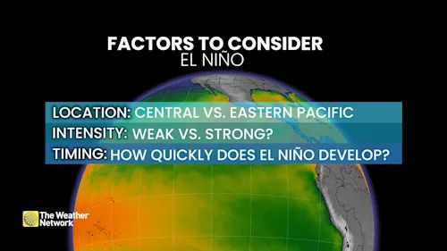 A strong event with very warm temperature anomalies will have a greater influence on the atmosphere than a weak, marginal El Niño. The timing of the pattern’s onset, as well as precisely where in the Pacific the warmer waters develop, also matter for potential effects on our weather.