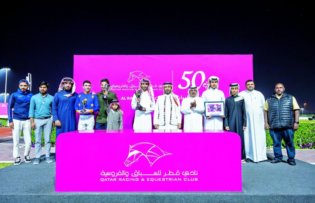 وعقب انتهاء السباق قام السيد عبدالله راشد الكبيسي، مدير إدارة السباقات بنادي قطر للسباق والفروسية، بتتويج الفائزين بكأس الخرارة.