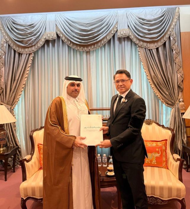 تسلم سعادة السيد جاكريد كراتشاي وونغ، مدير إدارة المراسم بوزارة الخارجية في مملكة تايلاند، نسخة من أوراق اعتماد سعادة السيد عبدالعزيز بن محمد السادة سفير دولة قطر لدى تايلاند.