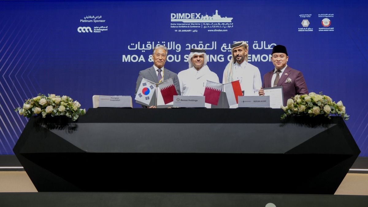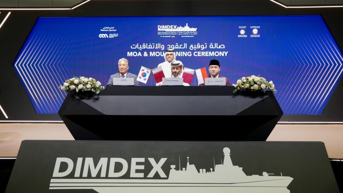 حضر سعادة الشيخ سعود بن عبدالرحمن بن حسن آل ثاني، نائب رئيس مجلس الوزراء ووزير الدولة لشؤون الدفاع، توقيع عدد من الاتفاقيات، وذلك على هامش أعمال اليوم الثاني لمعرض ومؤتمر الدوحة الدولي للدفاع البحري /ديمدكس 2026/.