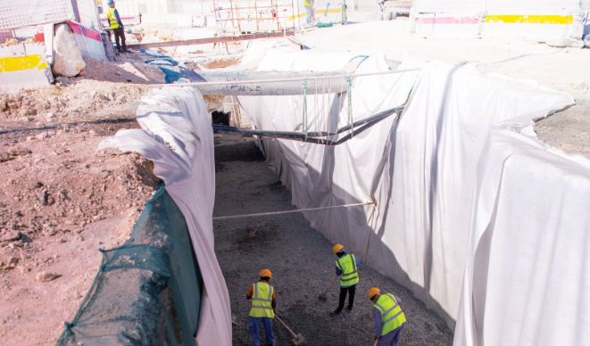 وبين مهندس المشروع أن الأعمال الجارية حاليا تشمل مد أنابيب تصريف مياه الأمطار وخطوط المياه السطحية، بالإضافة إلى تمديد أنابيب شبكات المياه المعالجة.