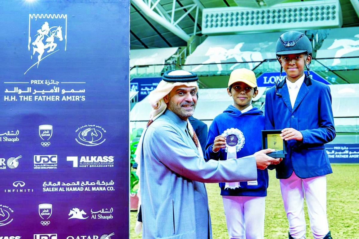 توج سعادة الشيخ ثاني بن حمد بن خليفة آل ثاني، رئيس مجلس إدارة صندوق قطر للتنمية الفائزين بالمراكز الخمسة الأولى في شوط الخمس نجوم على ارتفاع 140 سم، ضمن جائزة سمو الأمير الوالد والتي انطلقت ثالث جولاتها مساء أمس في ميدان لونجين بالشقب، بمشاركة كبيرة لنخبة من أفضل الفرسان المصنفين في العالم، وبجوائز تتجاوز قيمتها 3.3 مليون يورو للبطولة.