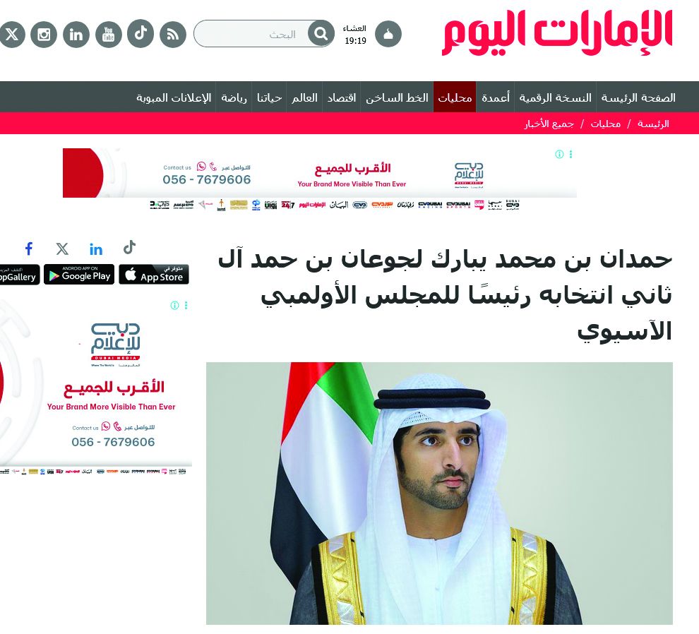 كما أوردت جرية الخليج الإماراتية التهنئة التي رفعها الشيخ حمدان بن محمد بن راشد آل مكتوم ولي عهد دبي، نائب رئيس مجلس الوزراء، وزير الدفاع الى سعادة الشيخ جوعان عقب انتخابه بالتزكية رئيسا للمجلس الأولمبي الآسيوي.