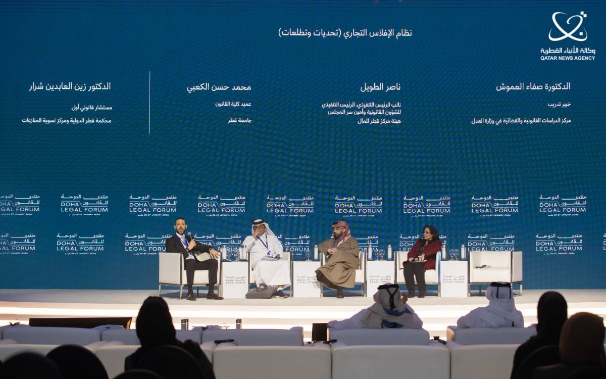 جاء ذلك خلال جلسة نقاشية بعنوان "نظام الإفلاس التجاري: تحديات وتطلعات"، انعقدت على هامش أعمال اليوم الثاني لمنتدى الدوحة للقانون، بمشاركة كل من: الدكتور محمد حسن الكعبي عميد كلية القانون بجامعة قطر، والسيد ناصر صلاح الطويل مدير إدارة الشؤون القانونية بوزارة التجارة والصناعة، والدكتور زين العابدين شرار المستشار القانوني بمحكمة قطر الدولية ومركز تسوية المنازعات، والدكتورة صفاء العموش عضو هيئة التدريب بمركز الدراسات القانونية والقضائية بوزارة العدل.