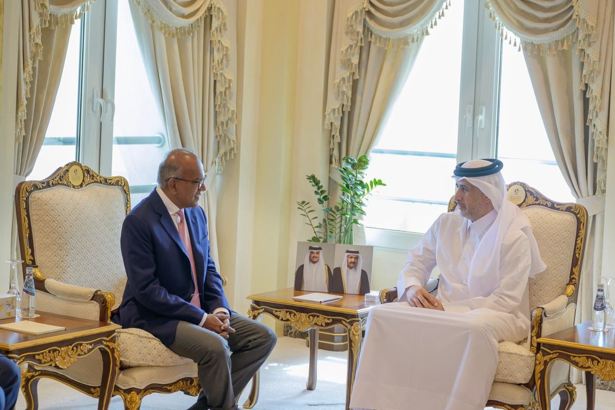 اجتمع سعادة الشيخ عبدالعزيز بن فيصل بن محمد آل ثاني وزير الدولة للشؤون الداخلية، مع سعادة السيد كي شانموغام الوزير المنسق للأمن القومي ووزير الشؤون الداخلية بجمهورية سنغافورة.