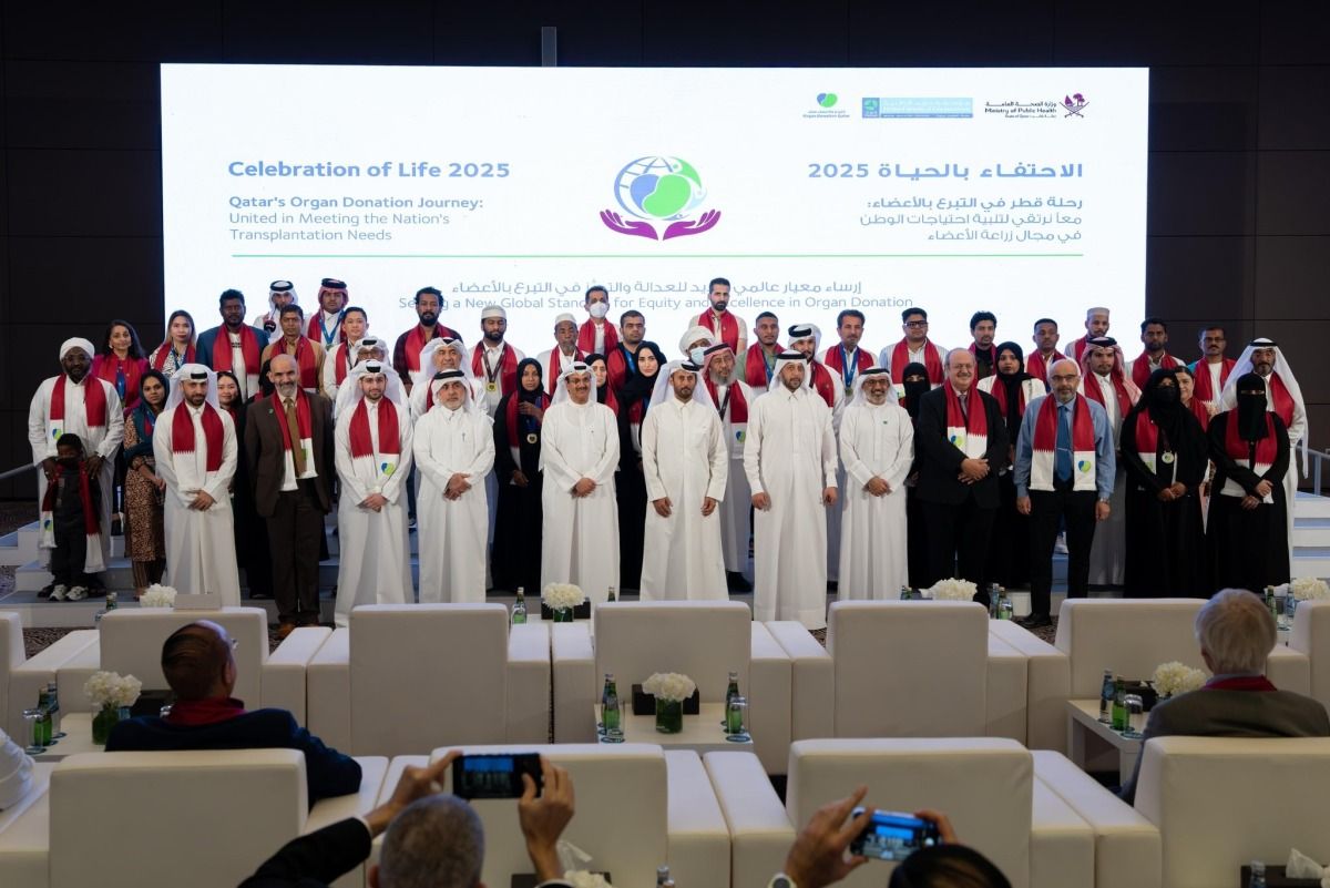 بحضور سعادة السيد منصور بن إبراهيم آل محمود وزير الصحة العامة، وسعادة السيد محمد بن خليفة السويدي المدير العام لمؤسسةحمد الطبية؛ نظّمت مؤسسة حمد الطبية احتفالية "الاحتفاء بالحياة2025" لتكريم المتبرعين بالأعضاء وعائلاتهم، تقديرًا لعطائهم الإنساني الذي أسهم في إنقاذ حياة العديد من المرضى.